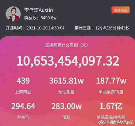去年年初有人分析出两人的年销售额在40-50亿左右,现在一天就搞了两倍出来,颠覆所有人的想象。