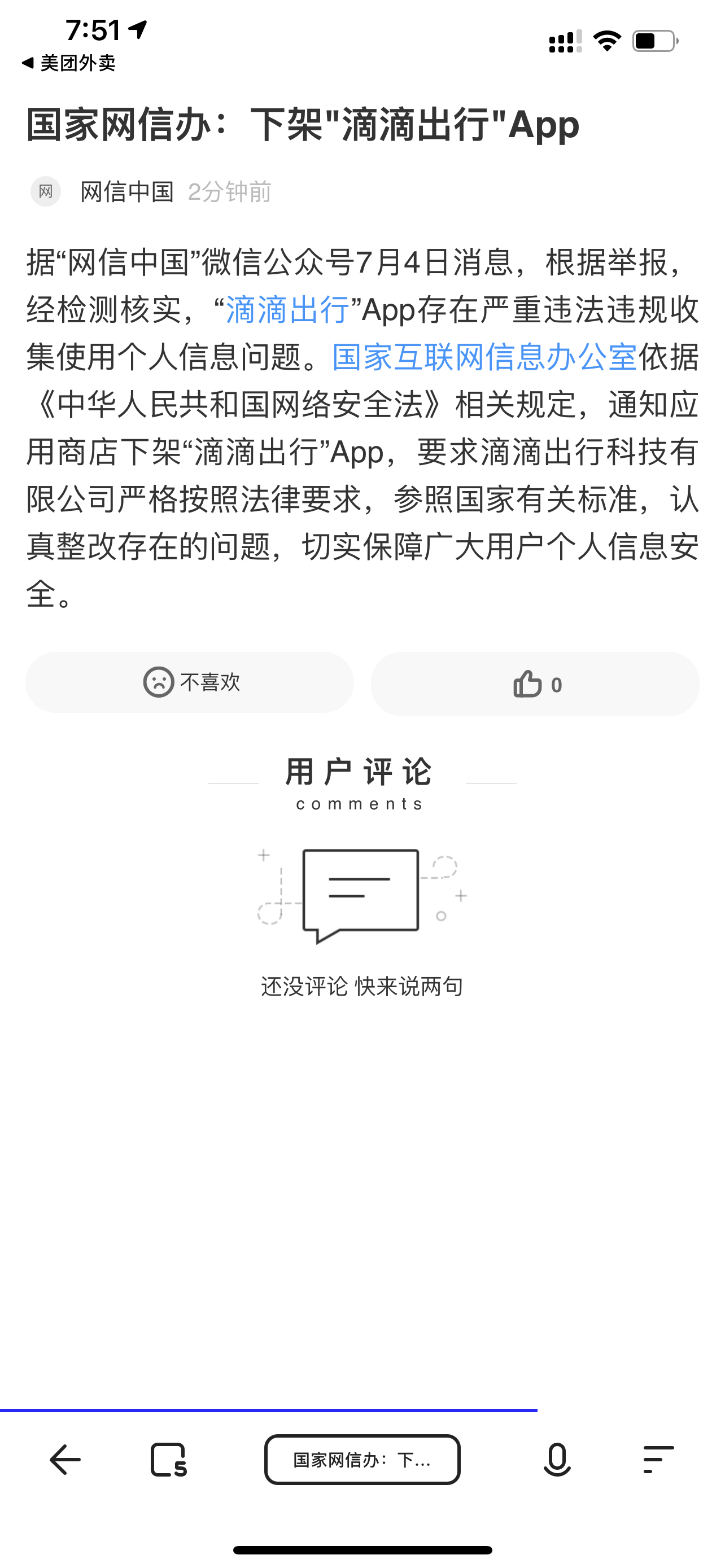 在 App Store 一星评价滴滴出行后不到半个月真的下架了,原来许愿是有回报的