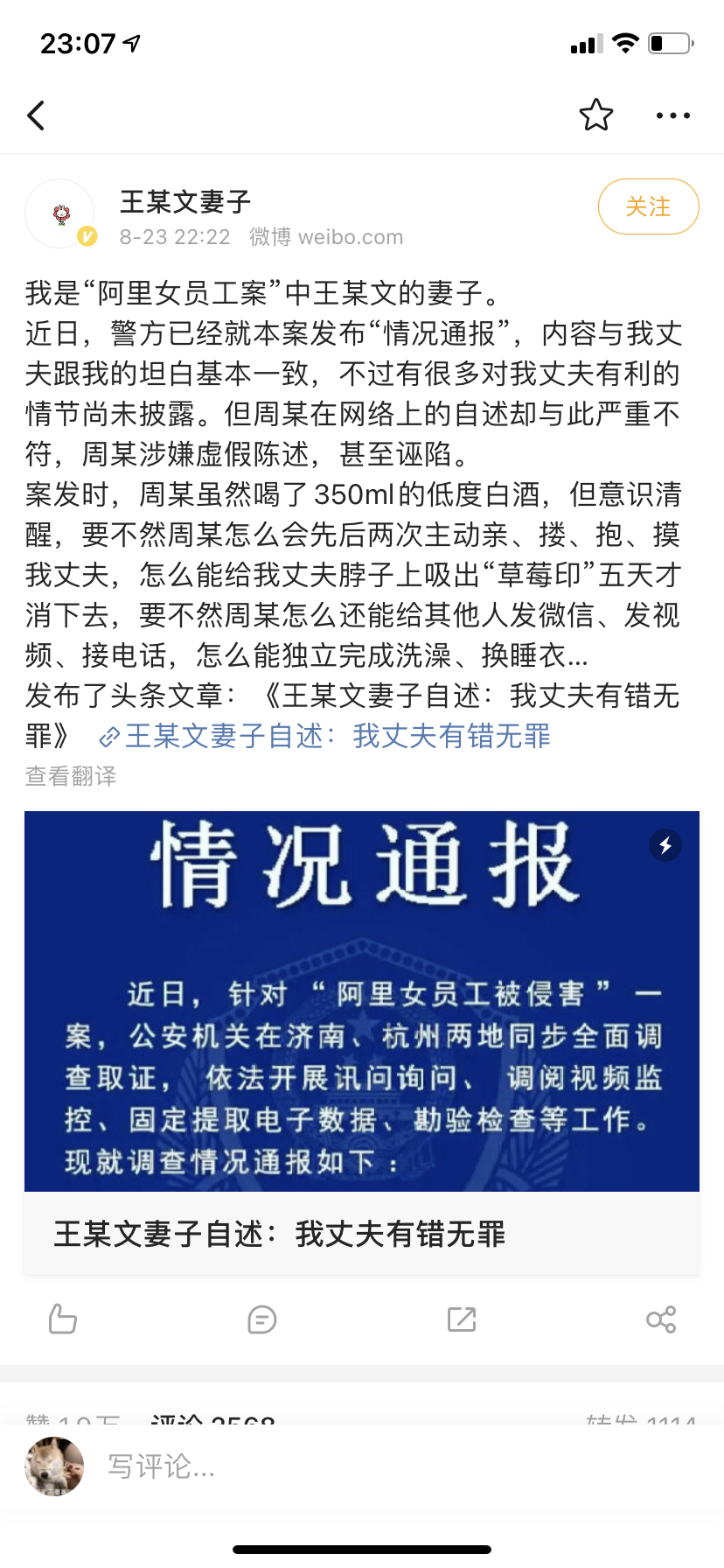 3、“阿里女员工被侵害案”嫌疑人王某文已被指定居所监视居住