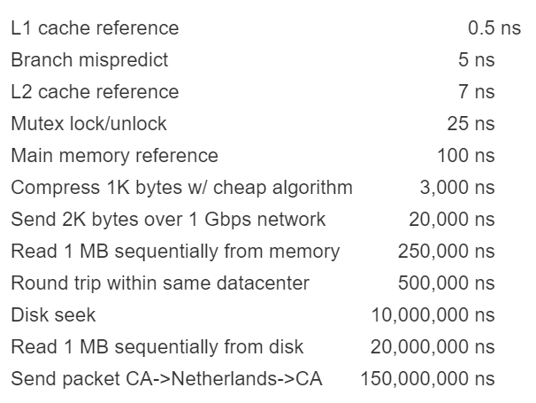 Jeffrey Dean gave a talk "Building Software Systems at Google and Lessons Learned" at Stanford. One of his slides was the following list of numbers ⬇️