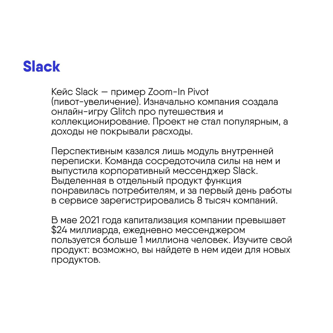 1️⃣ Пивот-увеличение (Zoom-In Pivot) — один из элементов продукта становится основным. Стартап фокусируется на ключевой функции, приносящей наибольший финансовый доход, — она отделяется и выступает самостоятельным продуктом.