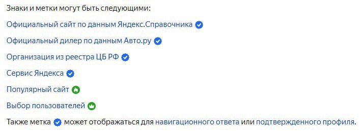 Яндекс добавил специальные значки к некоторым сайтам в результатах поиска. Эти значки должны давать дополнительную информацию о сайтах и помогать ориентироваться.