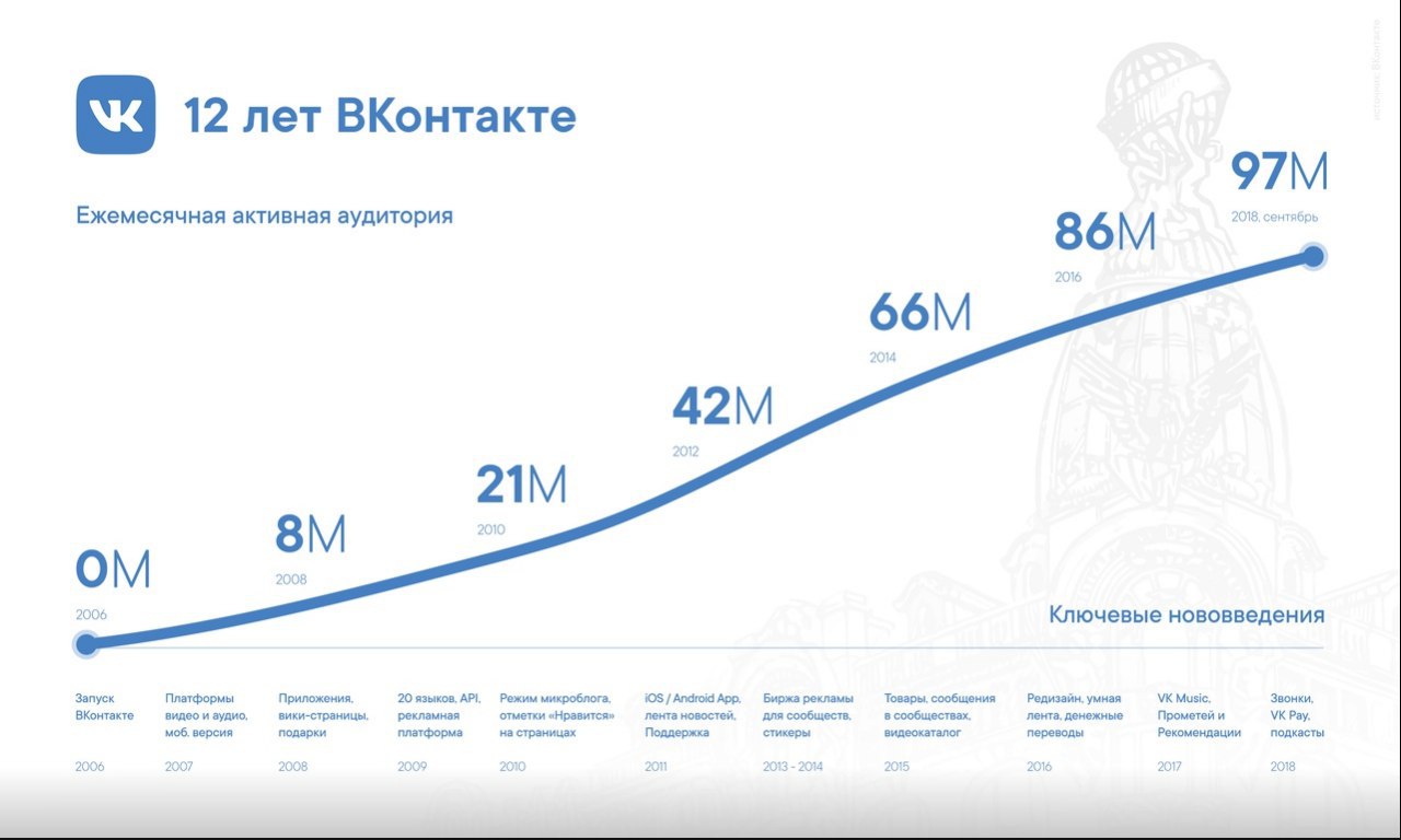 #statistics #visualization 10 октября ВКонтакте исполнилось 12 лет! За это время соцсеть выросла до почти 100 миллионов активных пользователей и реализовала большое количество нововведений! 👏