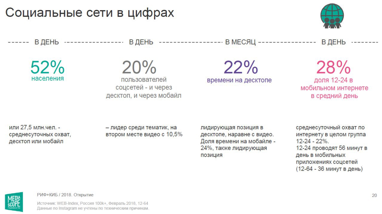 #mr #analytics #report Нашел у себя презентацию Инессы Ишунькиной (директор по интернет-исследованиям Mediascope), которую она делала на открытии РИФ 18 апреля 2018 года. 📈