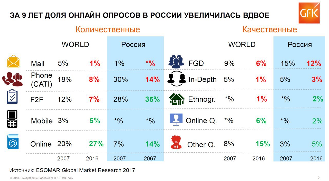 #mr #methodology #presentation Продолжаю разбирать архивы. 24 апреля 2018 года состоялась XII Всероссийская научная конференция памяти Юрия Левады «Современное российское общество и социология». В секции «МЕТОДЫ В МАРКЕТИНГОВЫХ ИССЛЕДОВАНИЯХ» Петр Залесский («ГфК-Русь» или теперь уже Ипсос?!) сделал доклад на тему «Онлайн и офлайн опросы в России: в поисках репрезентативности. Опыт сопоставительного анализа результатов». 🤔