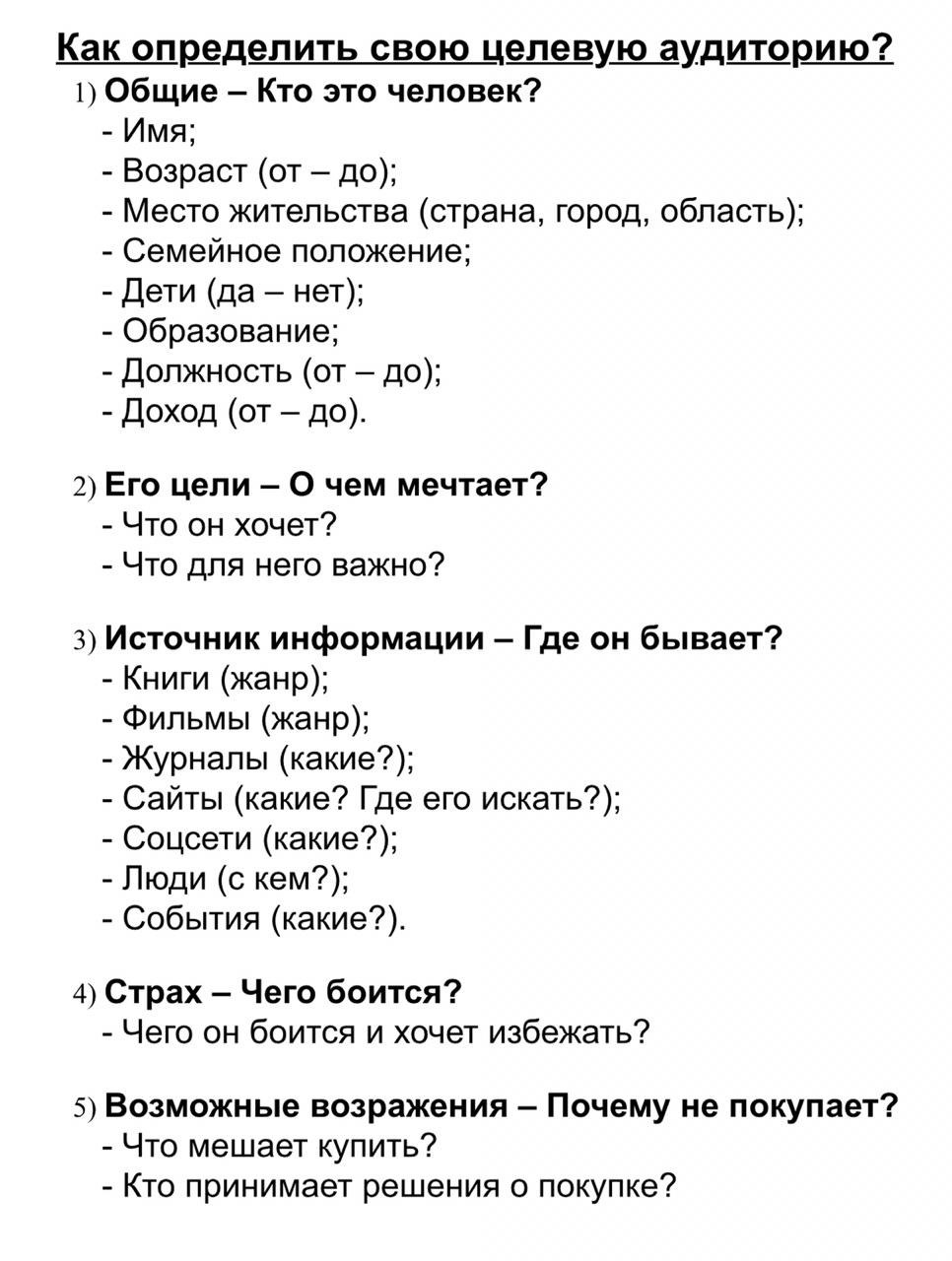 Так вот, сейчас скину файл с вопросами, которые помогут вам определить свою ЦА.
