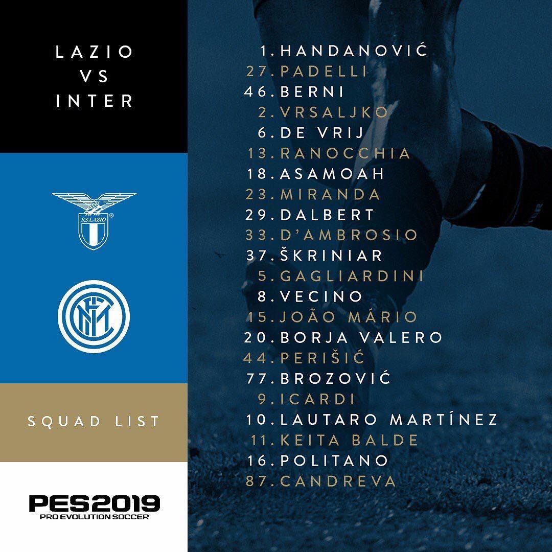 Заявка на Лацио. Отсутствует (ожидаемо) лишь Раджа.