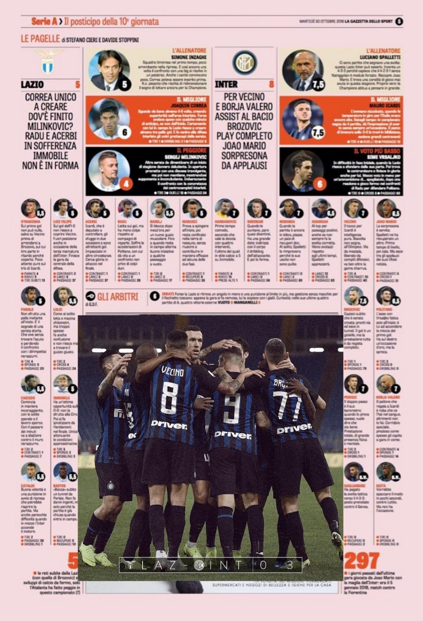 🏟 Последний раз на Олимпико Интер проигрывал 1го мая 2016го. Матч закончился со счетом 2:0, а второй гола забил Кандрева с передачи Кейты. Оба кальчаторе- игроки Интера на данный момент. С того матча Интер выиграл 2 из 2 визитов в Рим (1:3 в 2017 и 2:3 в 2018)