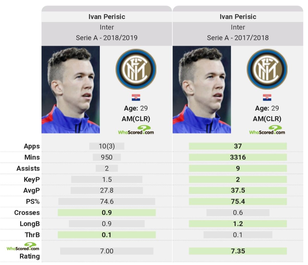 В прошлом сезоне Иван Перишич был не просто одним из лидеров Интера, но и в числе лучших на своей позиции во всей Европе, связка #perisictoicardi наводила ужас на соперников и приносила очки. В этом же - хорват бледная тень самого себя, достаточно взглянуть на все ключевые показатели игрока. В чем же кроется причина спада Ивана Перишича?