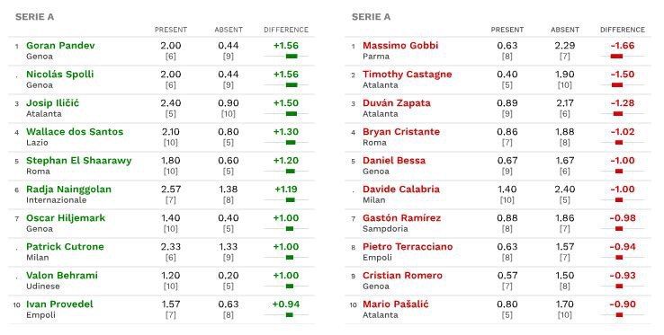 Возможно в этом сезоне Раджа Наингголан пребывает в своей худшей форме, чем когда либо, но, по данным CIES Football Observatoty, с бельгийцем на поле Интер набирает на 1,19 очка больше, чем без него.