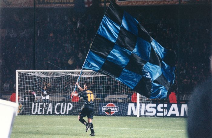 Внимательные подписчики меня поправили, за что им огромное спасибо- дебют иероглифов состоялся аж на 5 лет раньше! В марте 2006го года Интер в таких майках обыграл Лацио со счетом 3:1 (дубль у Рекобы и один гол на счету Фигу).