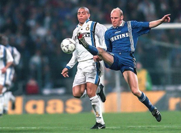 Еще одна четвертушка, еще один клуб из Вестфалии, еще один триумф в Кубке УЕФА. К поездке на Паркштадион Интер, после минимальной победы на Сан Сиро (красавец гол забил Феномен), подходил в статусе фаворита. Собранности парням Симони хватило ровно на 90+1 минуту. На 90+2й Гуссенс забил спасительный гол и игра перешла в овертайм. Неизвестно чем закончился бы овертайм или серия пенальти (не стоит забывать, что в финале предыдущего розыгрыша КУЕФА Шальке обыграли как раз Интер в серии 11-метровых), если бы уже на второй минуте дополнительного получаса Тарибо Уэст не замкнул подачу Бенуа Коэ со штрафного!