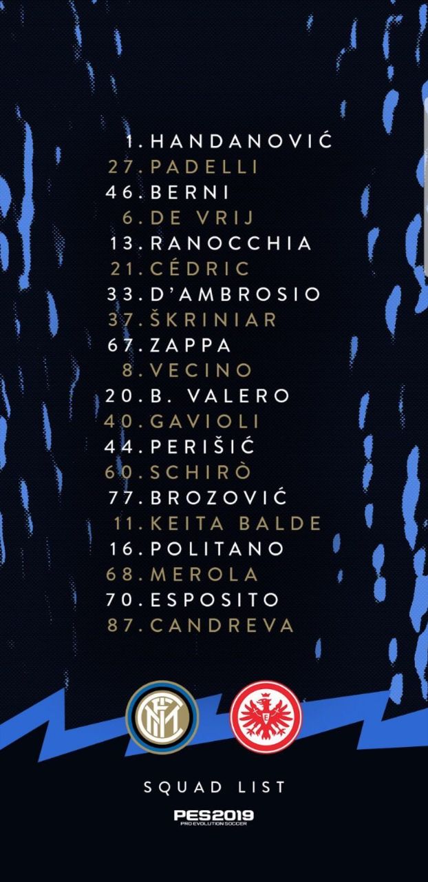 Интер вывесил заявку на предстоящий матч с Айнтрахтом.