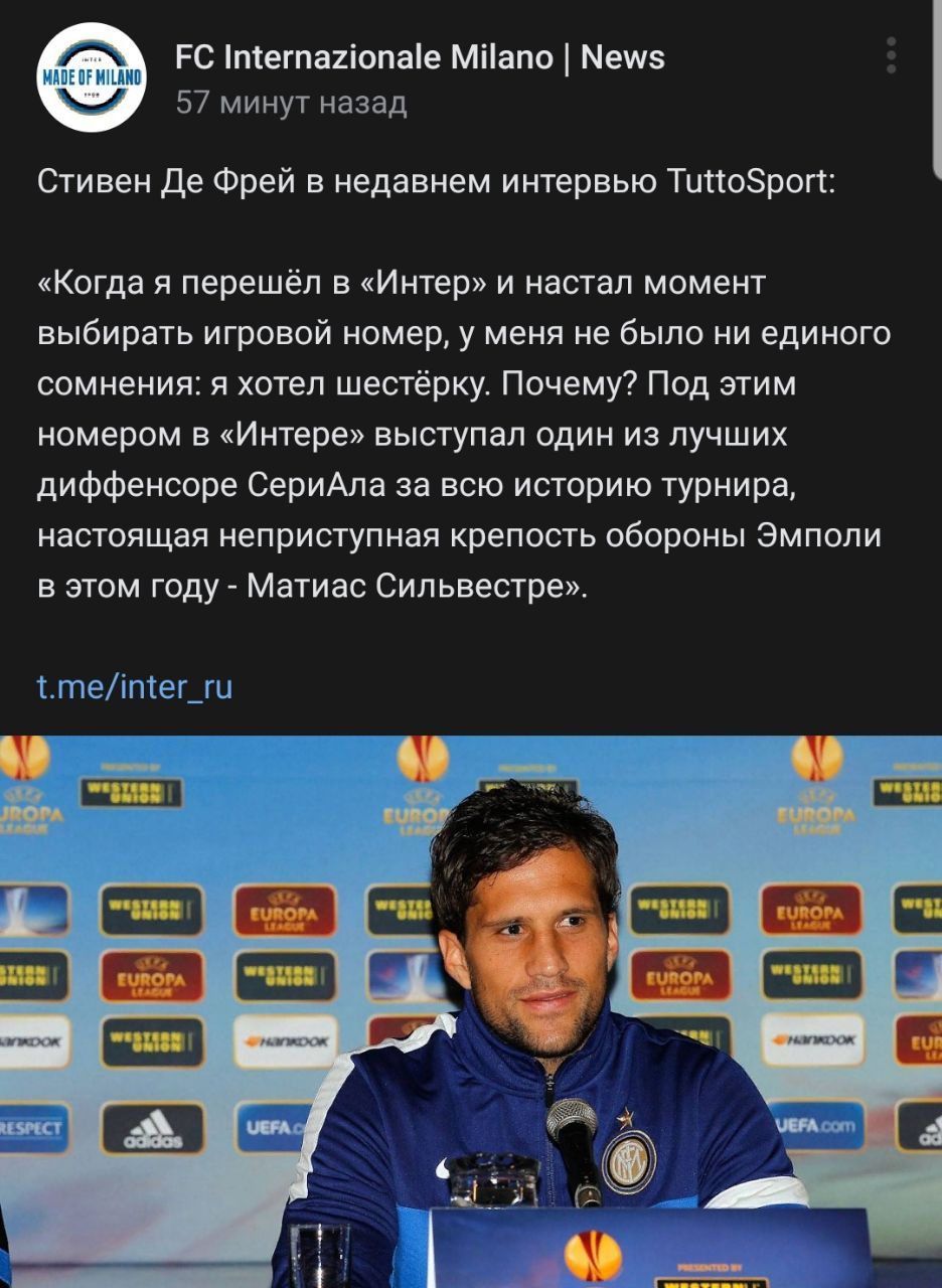 "Когда я перешёл в Интер и настал момент выбирать игровой номер, у меня не было ни единого сомнения: я хотел шестёрку. Почему? Под этим номером в Интере выступал один из лучших диффенсоре СериАла за всю историю турнира, настоящая неприступная крепость обороны Эмполи в этом году - Матиас Сильвестре".