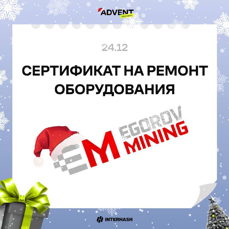 ❄️ПРИЗ: Сертификат на ремонт оборудования от нашего партнера EGOROV MINING