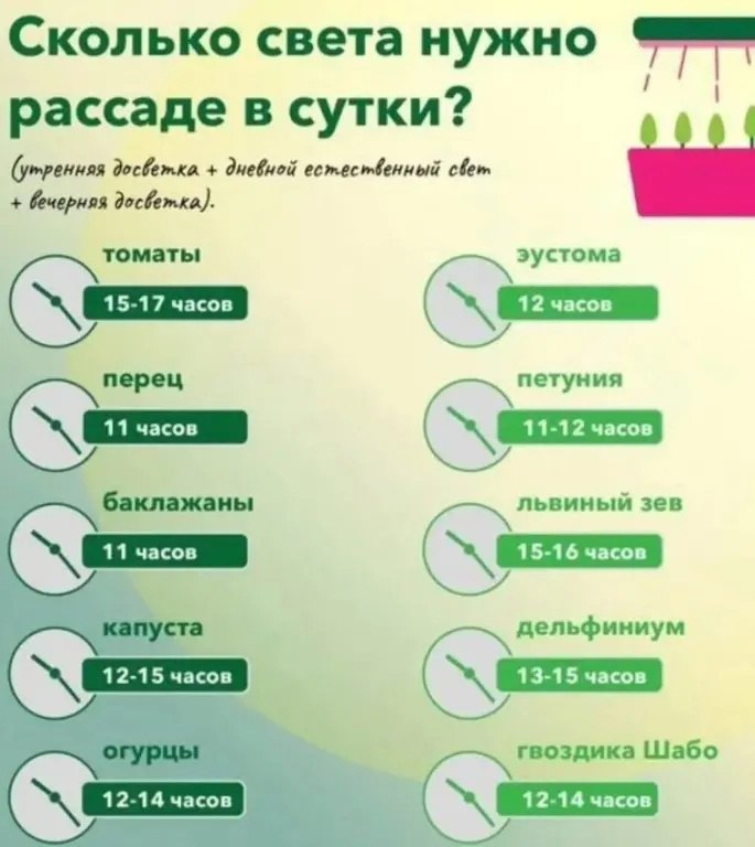 После чего температуру доводят до +17…+20°C днем и +10…+14 °C ночью и поддерживают на таком уровне в течение всего периода выращивания сеянцев.