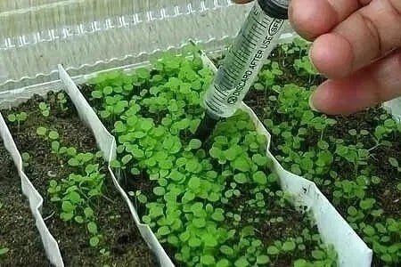 С помощью шприца я беру 10 кубиков данного раствора и разбавляю в пол литре воды, тщательно перемешиваю и получается "рабочий" раствор. Им поливаю растения под корень. Уже примерно через 2-3 дня появляются первые результаты - улучшается корневая система, стволики рассады становятся толще, а сама петуния после такой подкормки будет замечательно развиваться.