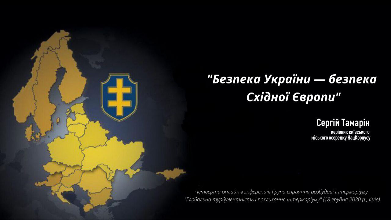⚡️Екс-командир роти спеціального призначення "Схід" МВС України, керівник Київського осередку Національного Корпусу Сергій Тамарін продовжує блок "Безпека України — безпека Східної Європи" Четвертої онлайн-конференції Групи сприяння розбудові Інтермаріуму "Глобальна турбулентність і покликання Інтермаріуму" (18 грудня 2020 р., Київ) з актуальним і для наших сусідів виступом на тему "Реформа поліції у світлі гібридних викликів Росії в регіоні: український досвід".