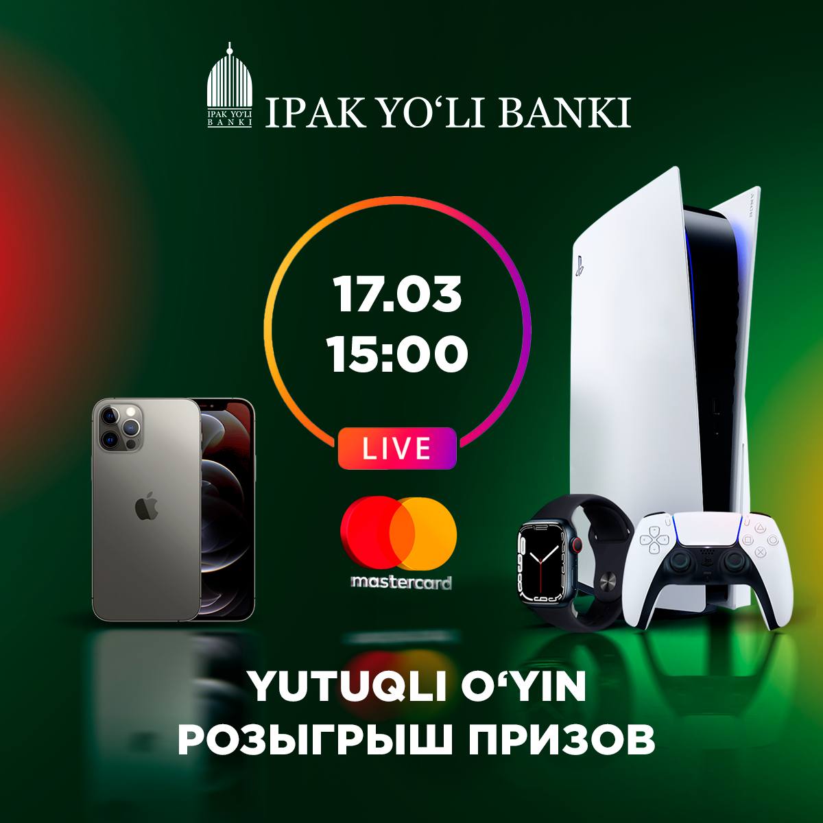 Bugun soat 15:00 da Instagram sahifamizda to‘g‘ridan-to‘g‘ri efir orqali «MasterCard bilan omadli xaridlar» aksiyamizning 3-bosqichi bo‘lib o‘tadi. 😊