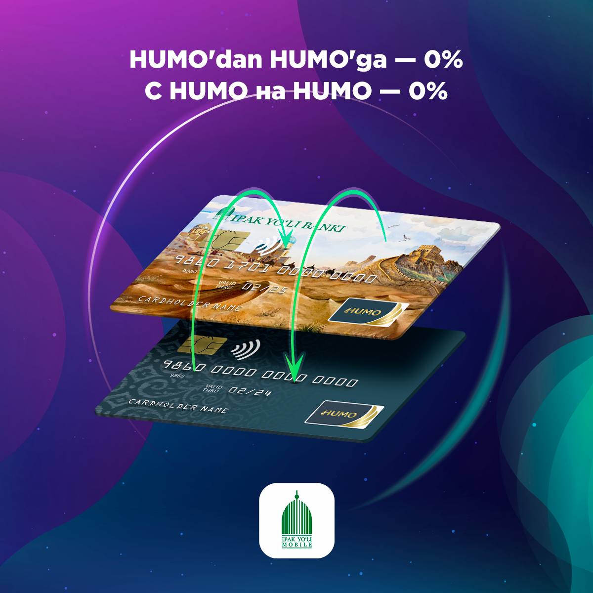 «Ipak Yo‘li Mobile» mobil ilovasidan foydalaning va yurtimizning barcha banklari HUMO kartalari orasida o‘tkazmalarni KOMISSIYASIZ amalga oshiring! 🔥