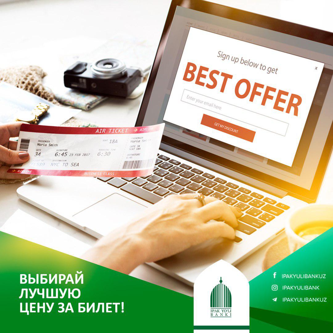 Банк "Ипак Йули" призывает вас экономить - и не спешить тратить все сбережения💸 в ближайшей авиакассе! Просто сравните цены в специальных онлайн-сервисах, вроде http://aviasales.ru - и турагентствах. Билет до Парижа🗼 в аэропорт де Голля оценивается в 600 долларов? Как бы не так! 400! Главное - найти выгодное предложение👍!