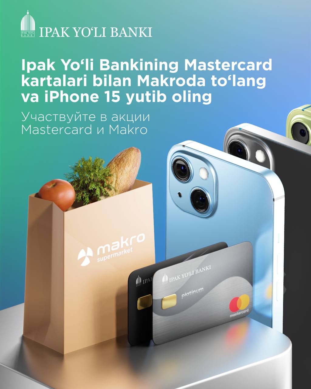 Mastercard va Makro 100 ta iPhone 15 uchun sovrinli o‘yin o‘tkazmoqda! 🔥