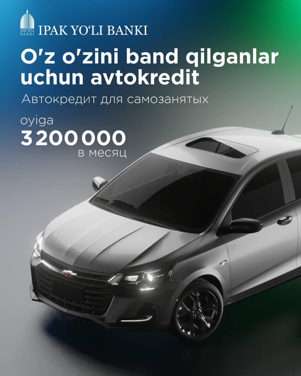 Ipak Yo'li Bankida o‘z-o‘zini band qilgan shaxslar uchun avtokredit. 🚗