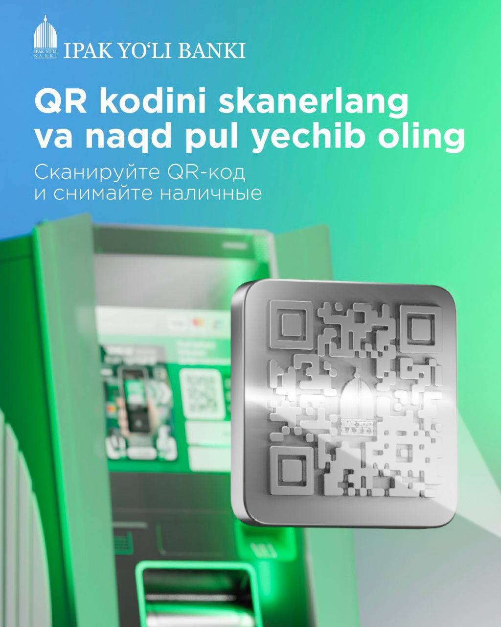 Humo, Visa, Union Pay va Mastercard kartalaridan mablag‘larni Ipak Yo'li Mobile va QR-kod yordamida yechib oling.