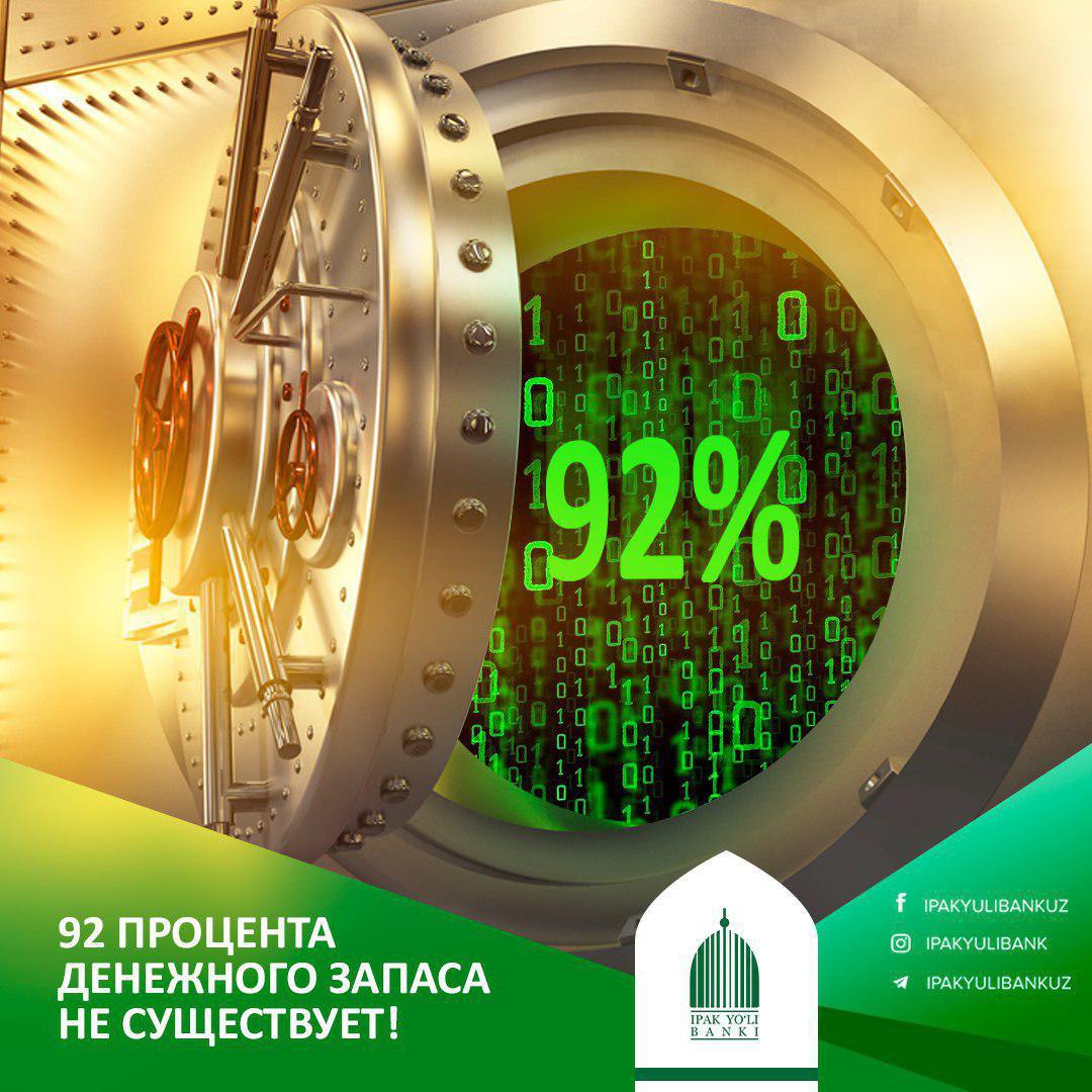Молия дунёси ўз номи билан ҳар жиҳатдан бой🎩 - шу ўринда қизиқ маълумотлари ҳам кўп. Биласизми, азиз дўстлар, моддий мавжуд, ҳақиқий пуллар дунё валютасининг атиги САККИЗ ФОИЗИНИ❗️ташкил этади, холос. Қолган пуллар эса КОМПЬЮТЕР ҳисобида рақамли код сифатида сақланади!