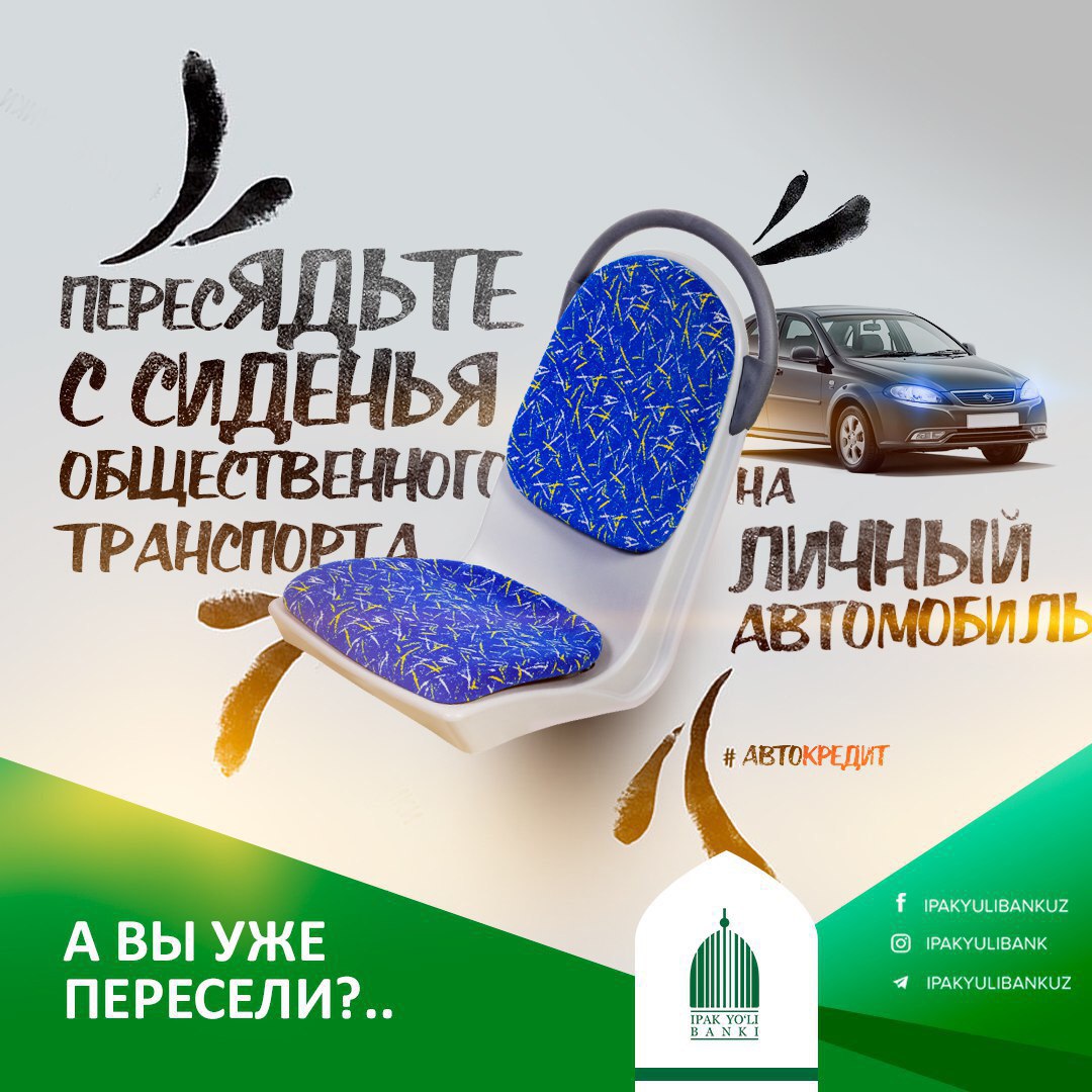 Жамоат транспортидан💺 фақат Сизга тегишли автомобиль 🚗 ўриндиғига ўтинг - "Ипак Йўли" Банкининг Автокредити Сизга кўмакчи бўлишга тайёр!