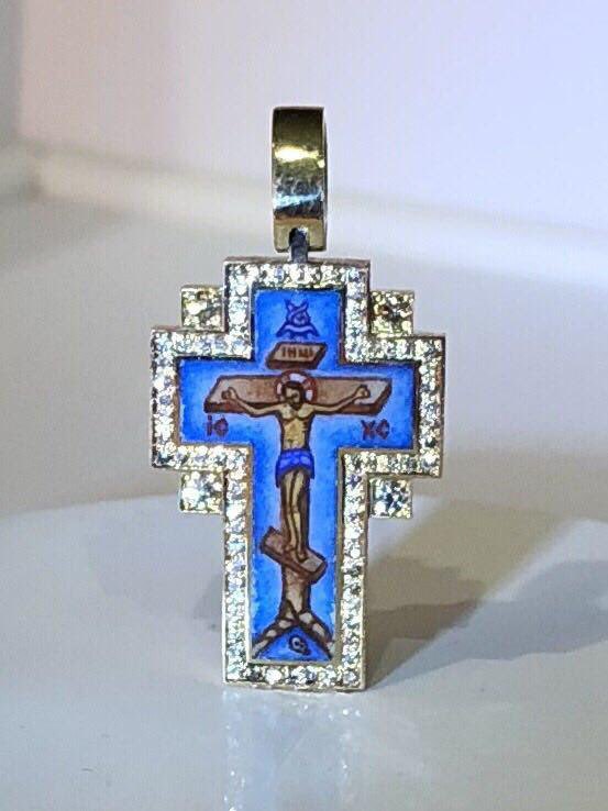 Крест и золота 750 пр. Бриллианты. Горячая эмаль.