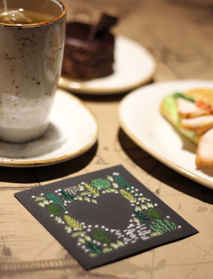 С изображением северной флоры и фауны. При изготовлении используется плотный картон, который декорируется вышивкой нитками и бисером. В данной работе представлена поздняя осень, с только что выпавшим снегом! Размер 10х10 см.