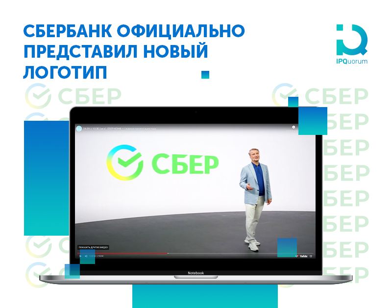 На онлайн-презентации, прошедшей 24 сентября, Сбербанк представил новый логотип. Он выглядит как незаконченный круг сине-желто-зеленого цвета. Внутри фигуры расположена зеленая галка, а рядом — слово «Сбер», написанное зелеными буквами. По словам главы Сбербанка Германа Грефа, на внедрение бренда за пять–шесть лет планируется потратить около 2,5 млрд рублей.