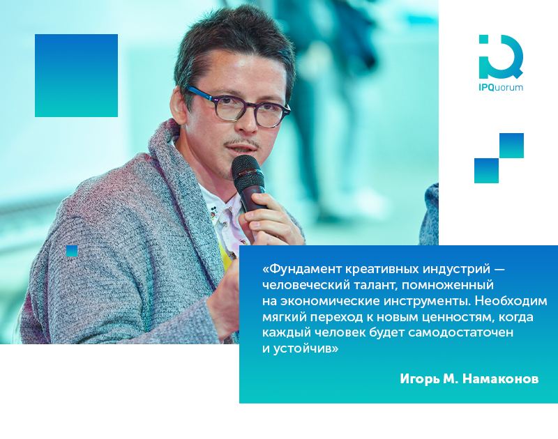 Игорь Намаконов заострил внимание на цифрах: «Капитализация творческих индустрий в мире, по разным оценкам, — от 2,5 до 3,5 трлн долларов, в России — 12 млрд долларов. Темпы развития ВВП, генерируемого КИ, на 30% выше остальной экономики. Даже во время пандемии рынок КИ вырос на 14%. При этом в Москве на 2018 год более 100 000 индивидуальных предпринимателей и организаций сформировали более 3 трлн рублей выручки. Доля КИ в экономике столицы — 6,3%. Это больше, чем в Гонконге, но меньше, чем в Лондоне». Он также выделил тезис: «Фундамент креативных индустрий — человеческий талант, помноженный на экономические инструменты. Необходим мягкий переход к новым ценностям, когда каждый человек будет самодостаточен и устойчив».