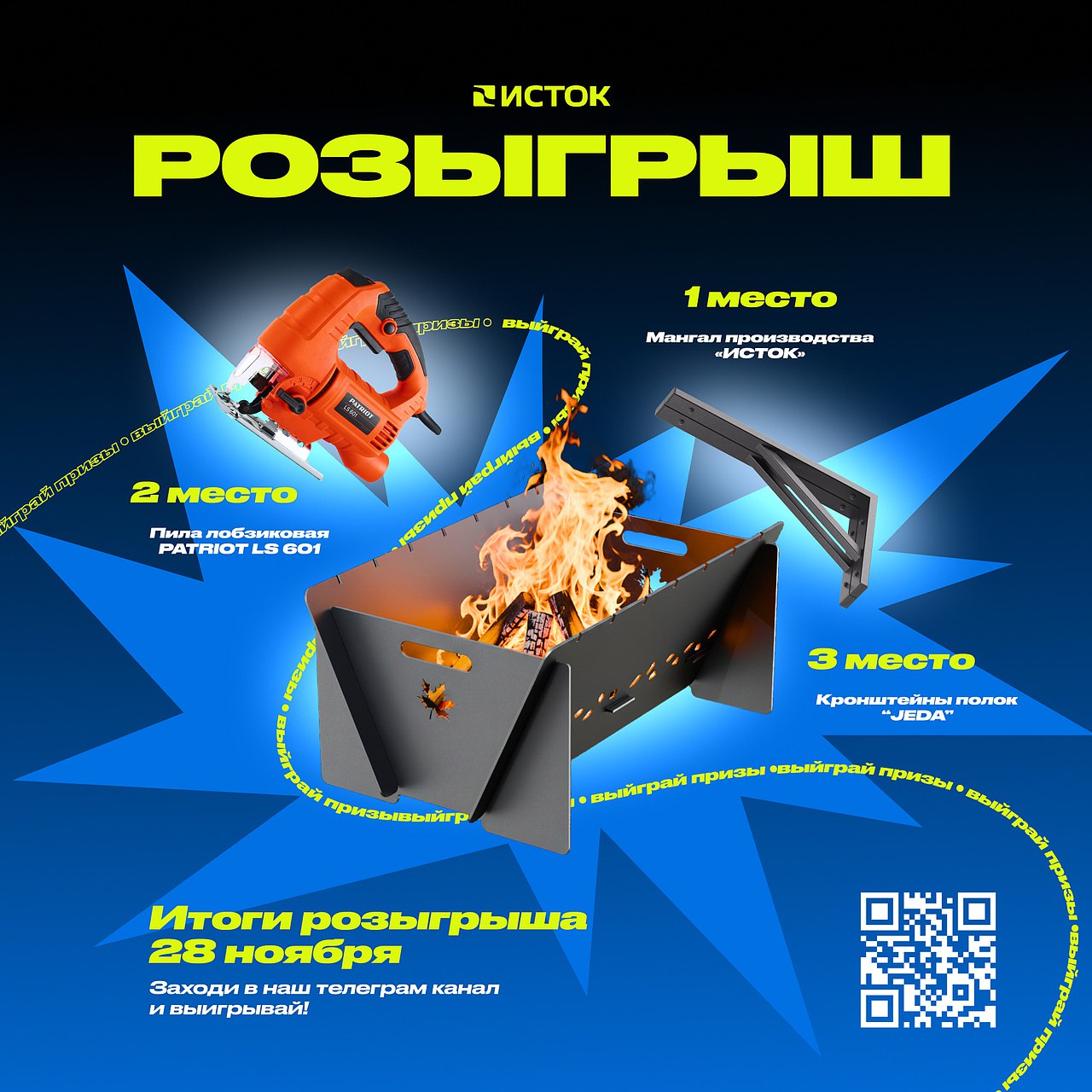 Выберем случайным образом 3 победителя и вручим мангал, лобзик и кронштейны.