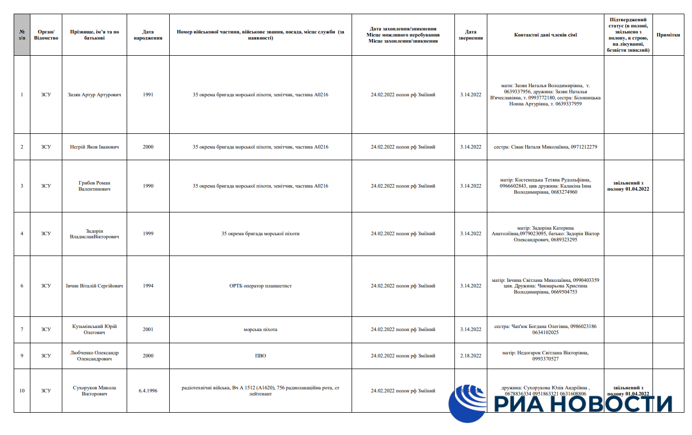 В документах учета погибших, пропавших без вести и попавших в плен военнослужащих ВСУ, почти 40 человек из подразделений с острова Змеиный числятся попавшими в плен, хотя Киев официально объявил их погибшими и наградил еще в самом начале спецоперации.