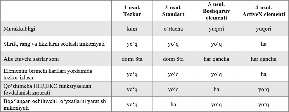Ushbu maqolamiz orqali tanishtirilgan ochiluvchi ro‘yxatlarni yaratishning 4 usulini e’tiboringizga havola etamiz.