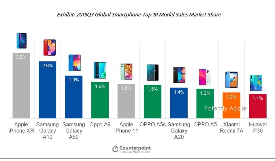 Umuman olganda, 2019 yilning uchinchi choragida jahon smartfon bozorida sotilgan barcha qurilmalarning taxminan 17 foizi mana shu o‘nta modelga to‘g‘ri kelgan. Taqqoslash uchun aytish mumkinki, bir yil avval mazkur ko‘rsatkich 15 foizga teng bo‘lgan.