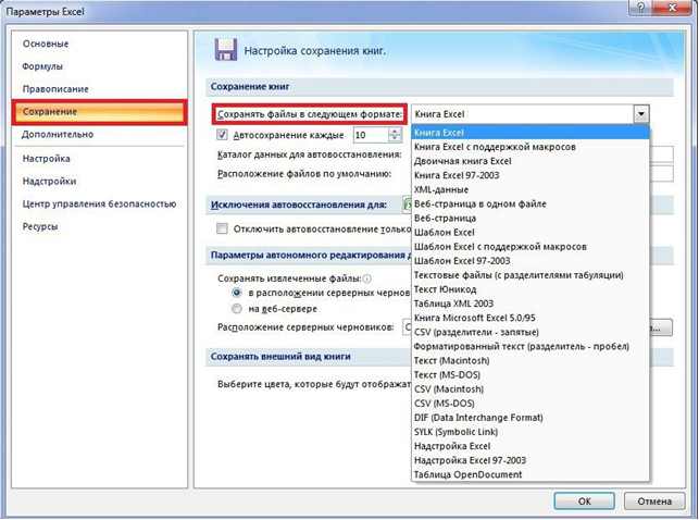 Keyinchalik Excel’ning eski versiyasida foydalanish maqsadida faylni saqlash uchun Файл → Сохранить как...’ga o‘ting va ochiluvchi ro‘yxatdan mos keluvchi formatni tanlang.