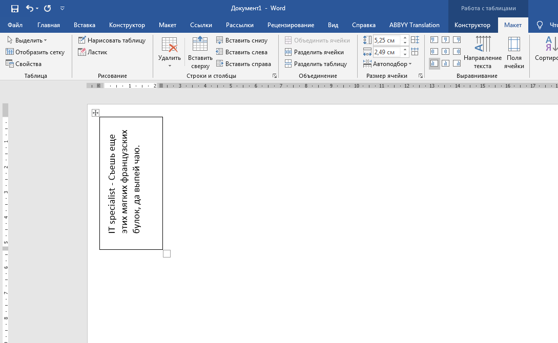 Jadvalni belgilang, “Макет” menyu bo‘limiga o‘ting va “Направление текста”ga bosing.