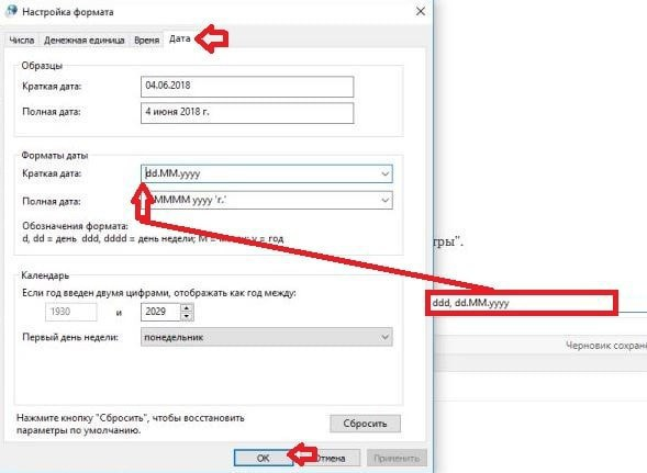 (Чт) va to‘liq (четверг).Ko‘pchilik tizimni rus tilida o‘rnatganligi sababli, hafta kunlarining o‘zbekcha tarjimasini eslatib o‘tamiz: