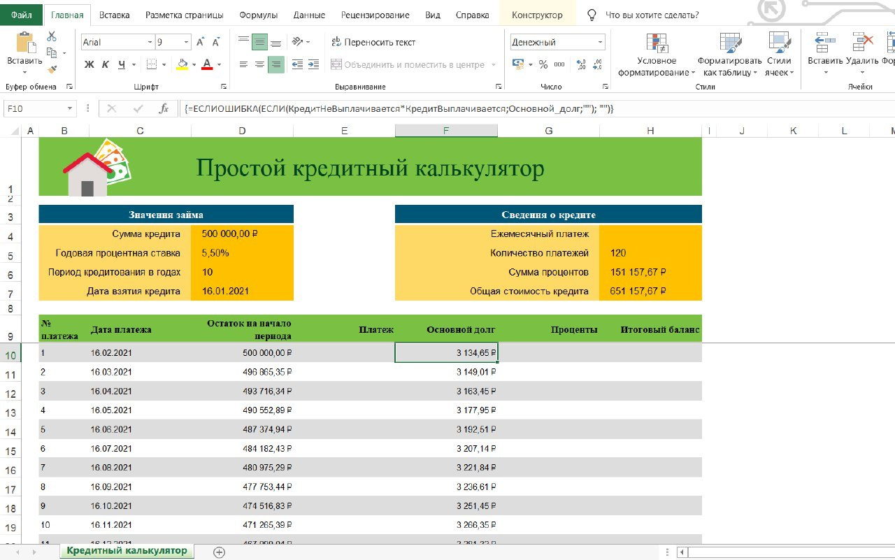 Oddiy kredit kalkulyatoridan foydalanish 🧮