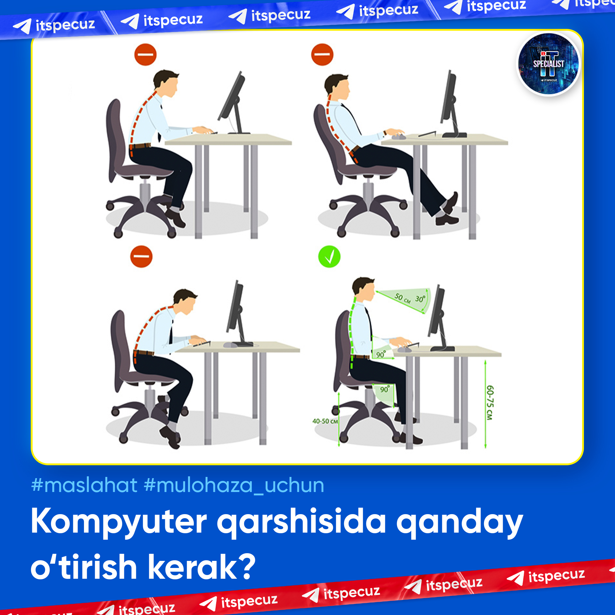 Kompyuter qarshisida qanday o‘tirish kerak? 💻🪑