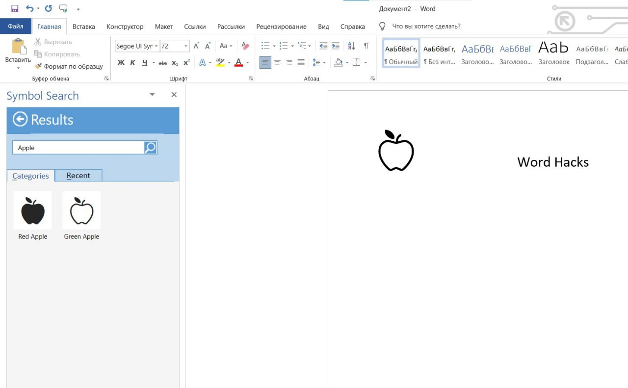 Ulardan foydalanish uchun Symbol Search qo‘shimcha vosita (надстройка)sini o‘rnatib oling. Buning uchun menyu satrida Вставка → Мои надстройки (ustiga bosiladi) → Магазин Office (tugma ustiga bosilari) bandlari bo‘ylab o‘ting va qidiruv satriga yuqorida aytib o‘tilgan nomlanishni kiriting 👆🏻.