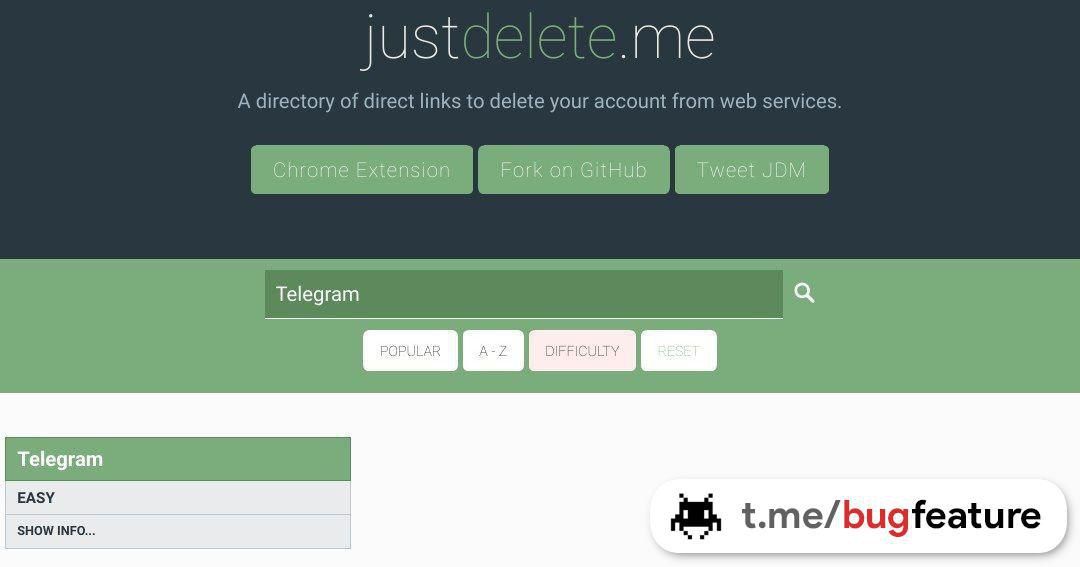 justdelete.me — bu ijtimoiy tarmoqlar va messenjerlar sahifalariga to‘g‘ridan-to‘g‘ri havolalarni o‘z ichiga oluvchi saytdir.