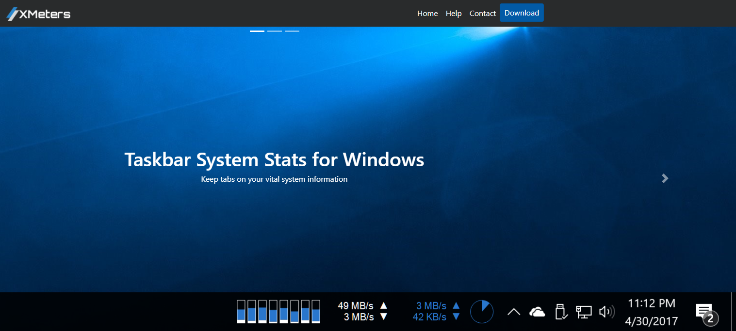 XMeters – vazifalar panelida real vaqt rejimida shaxsiy kompyuterning asosiy ko‘rsatkichlarini, masalan, protsessor yuklamasi, operativ xotiraning holati, disk bilan ma’lumot almashish tezligi, kiruvchi/chiquvchi trafikni aks ettirib turish uchun kichik bepul yordamchi dastur.