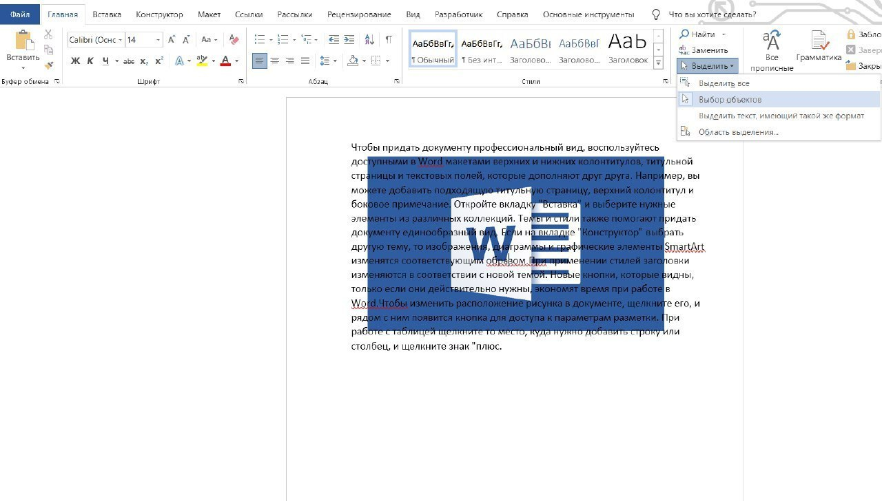 Aytaylik, matn ortiga joylashtirilgan obyektni belgilashingiz lozim.