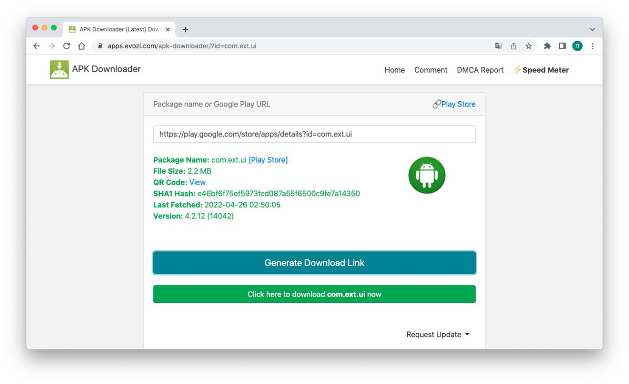 1️⃣. Birinchi holatda APK Downloader xizmati yordamga keladi. Undan foydalanish uchun esa shunchaki ilovaning Google Play'dagi havolasini nusxalab olib, xizmatdagi tegishli maydonga joylashtirishingiz kerak bo‘ladi.