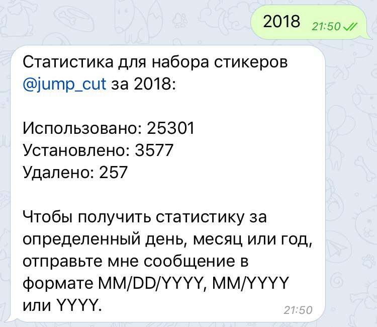 Судя по статистке за 2018 год, стикеры вам пришлись по душе (25к – использовано, 3,5к – установлено). Я решил немного прокачать старые и добавил пару новых стиков.