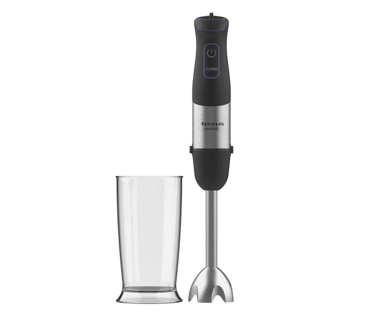 Batidora de mano de 1000W Taurus Amazing AHB1000X, con cuchillas resistentes de acero inoxidable de 4 filos, 20 velocidades + Turbo y vaso medidor de 600 ml incluido